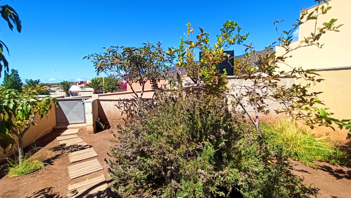 Imagine stepping into a world of unparalleled luxury, where the azure waves of the Atlantic Ocean are just a short drive away. This exquisite 1-bedroom apartment in the prestigious Valle del Sol complex, located in the sunny southern region of Tenerife’s Costa Adeje, offers breathtaking ocean views from the front sun terrace. With a total area of 168 m², it includes a welcoming entrance terrace (22 m²), a cozy living space (53 m²) featuring an open-plan living room with kitchen, a comfortable bedroom with built-in wardrobe, and a naturally lit and ventilated bathroom. Direct access from the living room and bedroom leads to a spacious terrace (28 m²) and a lush garden (65 m²) adorned with fruit trees and an automatic irrigation system. The garden connects seamlessly to communal areas and a shared swimming pool.